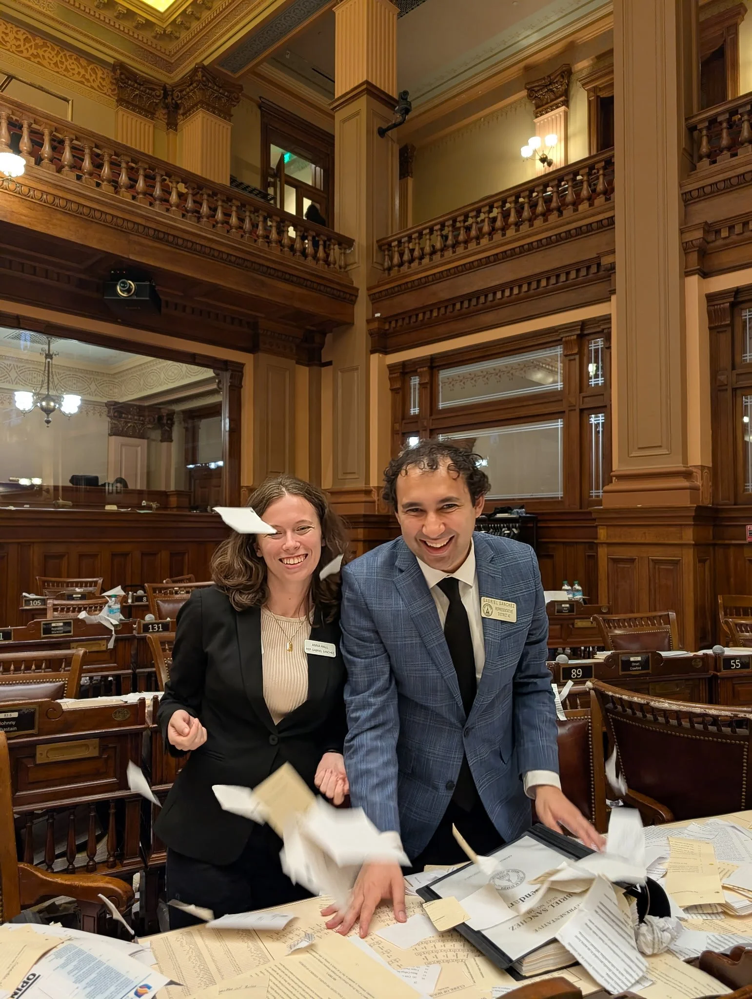 I’m Gabriel Sanchez, your Representative for House District 42. I represent Smyrna, Cumberland, and parts of South Marietta. I was born and raised in Cobb County to Colombian immigrants striving for a better future. I currently live in Smyrna with my partner Anna, our dog Winston, and our cat Kiki. I’m a long-time community organizer and advocate for working people, and I’m here to fight for you and your loved ones in the Georgia State House.